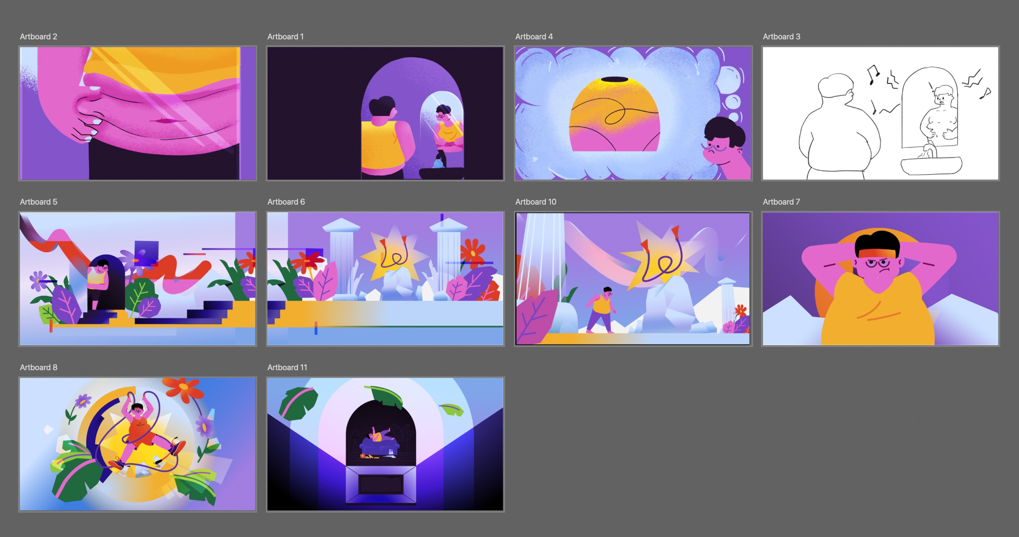 Dự án này là một cơ hội để mình thử nghiệm một số kỹ thuật và công cụ như C4D, frame-by-frame, plugin mới trong After Effects… nhằm mở rộng khỏi hạn chế của animation trong không gian 2D, và tạo ra những chuyển động đặc biệt mang tính điểm nhấn.