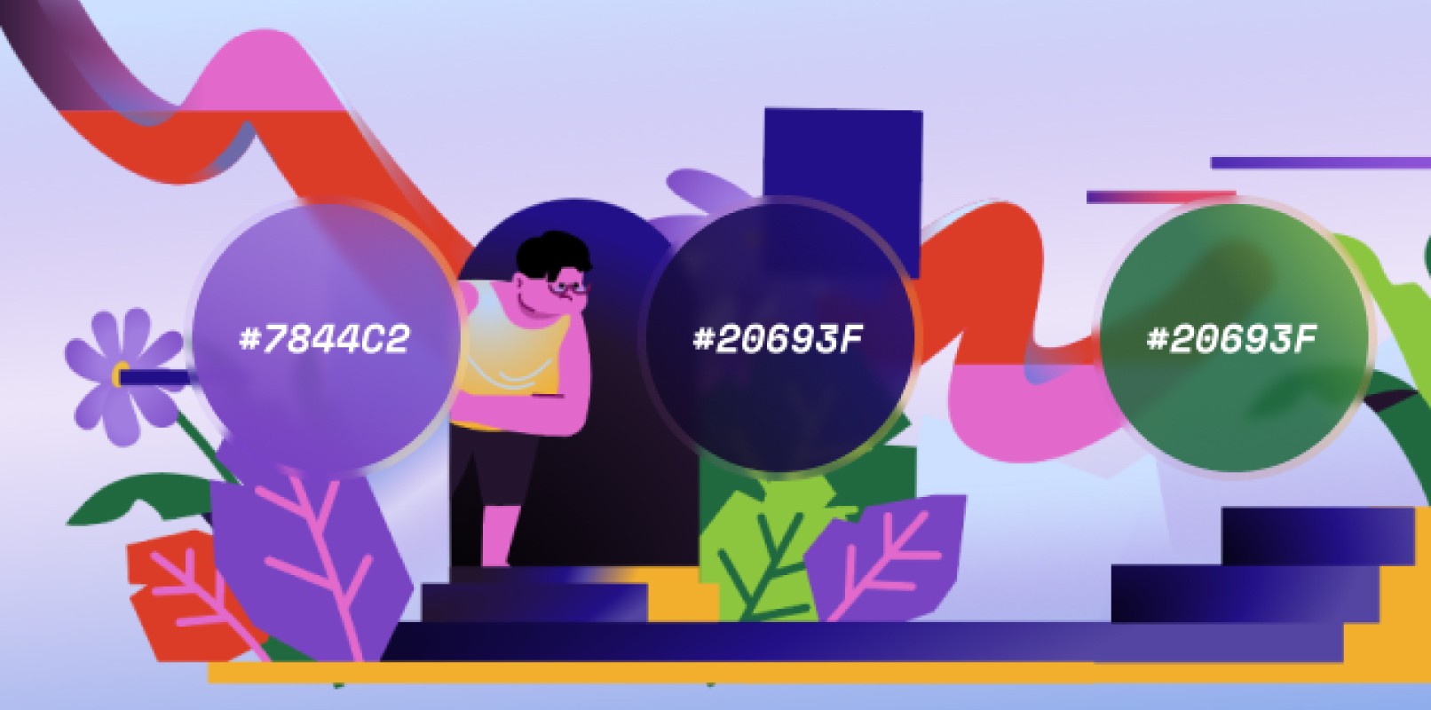 Do đó, mình tiếp tục thử nghiệm để tìm một bảng màu bắt mắt, hài hòa hơn với tinh thần của câu chuyện. Cuối cùng, bảng màu được sử dụng là sự kết hợp của hai cặp màu bổ túc: vàng & xanh cyan, xanh lá & hồng/tím/đỏ. Tất cả được gắn kết lại với màu xanh đậm.