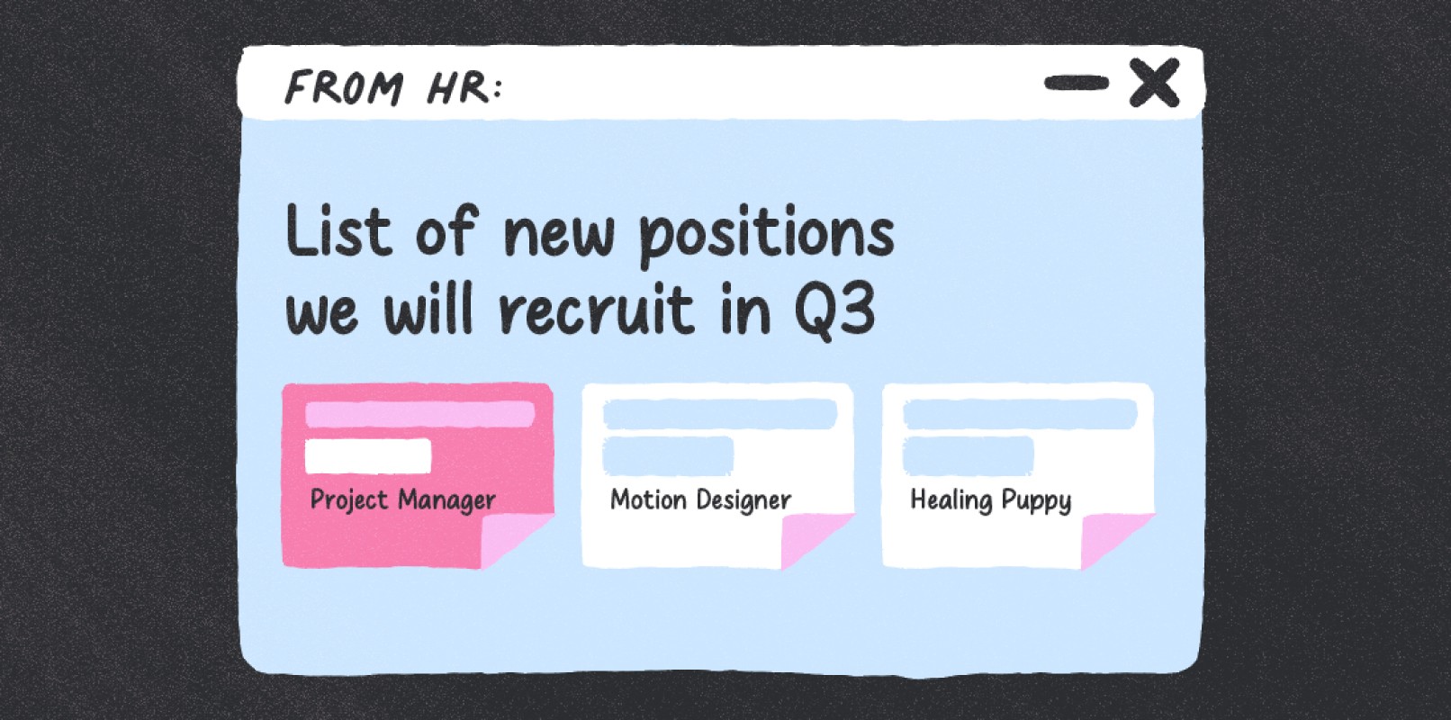Concept cần gần gũi, dễ liên hệ với các tình huống thực tế trong đời sống văn phòng (môi trường công ty, bàn làm việc, laptop,…). Những vấn đề tâm lý như stress, lo âu, cơn giận… được thể hiện sao cho nhẹ nhàng, dễ đồng cảm, tránh cảm giác quá tiêu cực.